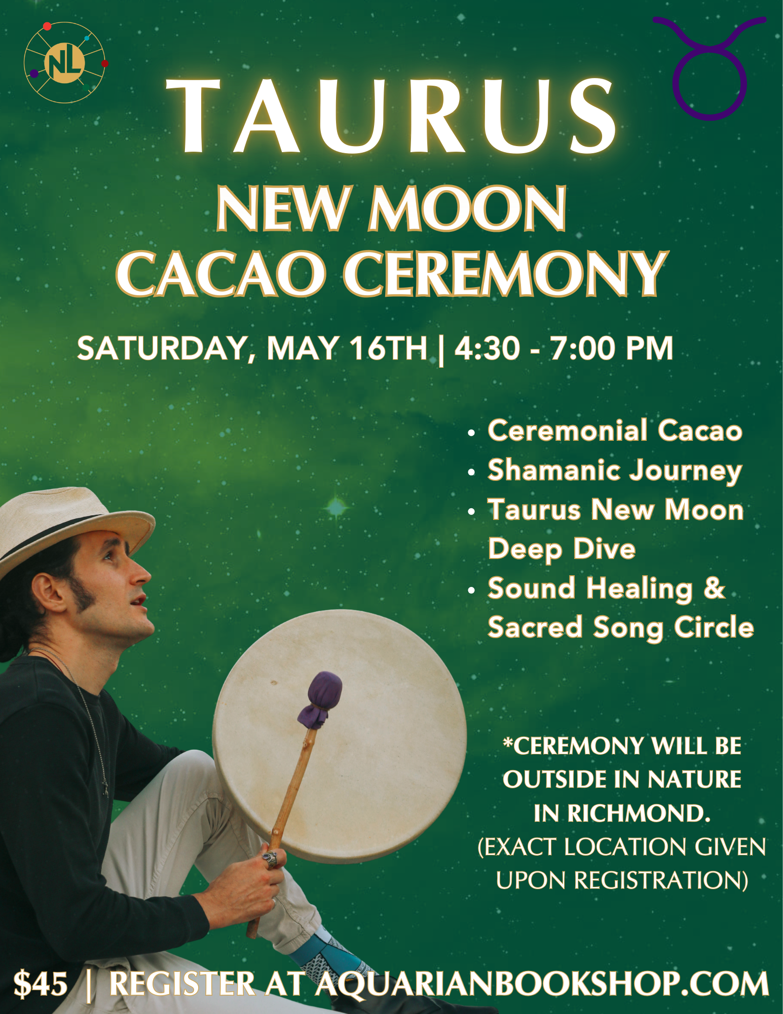 Join RVA Astrologer, Nick Lasky, for a TAURUS New Moon Ceremony with Cacao!
